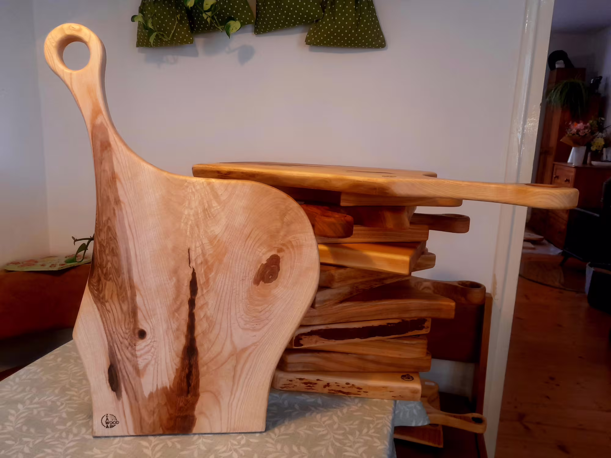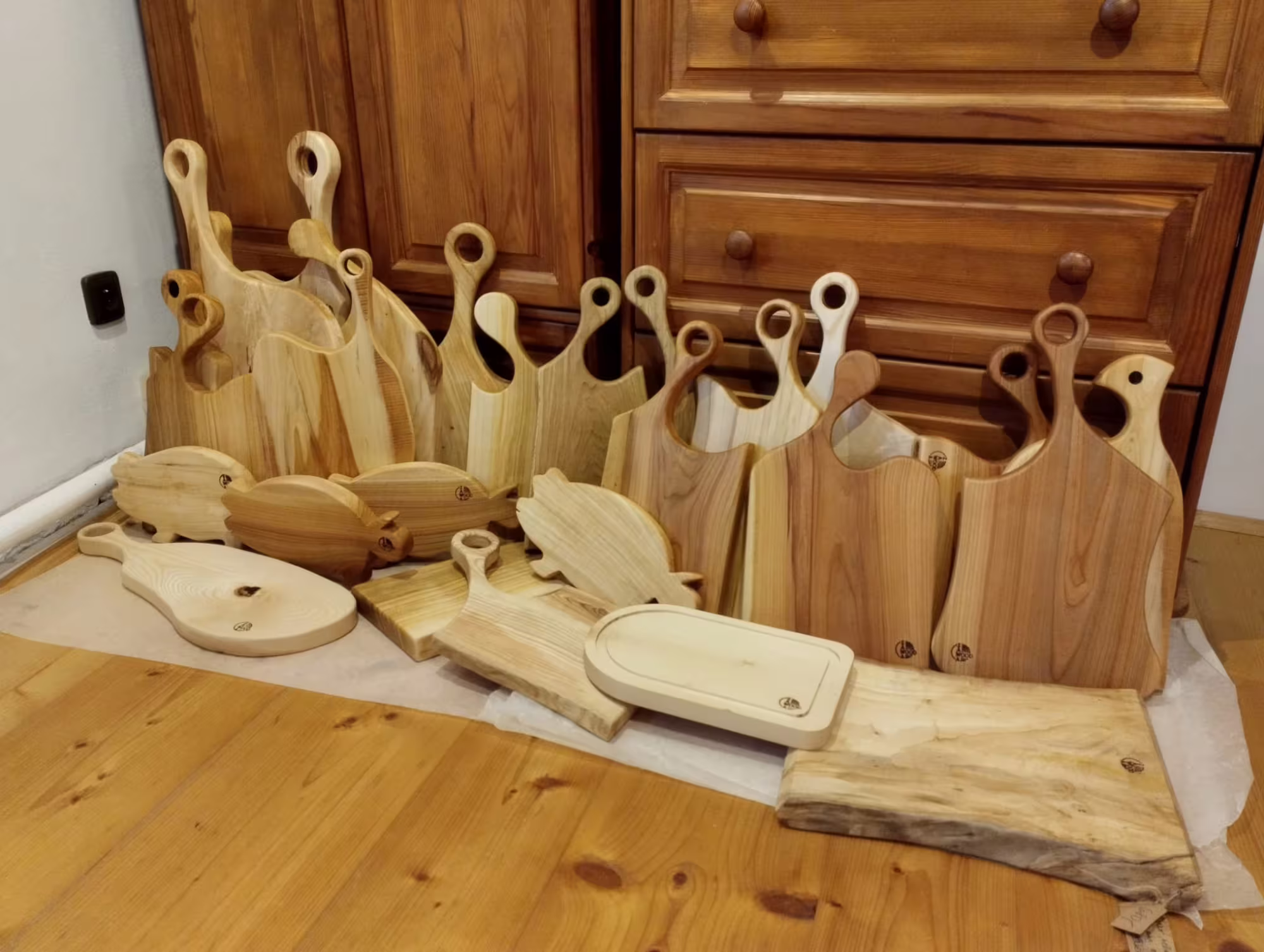 Po dokončení je každý kus cejchován vypalovací raznicí s mým logem ZAWAWOOD. Prkénka impregnuji domácím „máslem“ z ultra čistého minerálního oleje, včelího vosku a pryskyřice — plně bezpečné pro kontakt s potravinami. Každé prkénko dostane „rodokmenový lísteček“ s informacemi o původu dřeva a návodem, jak se o něj starat.