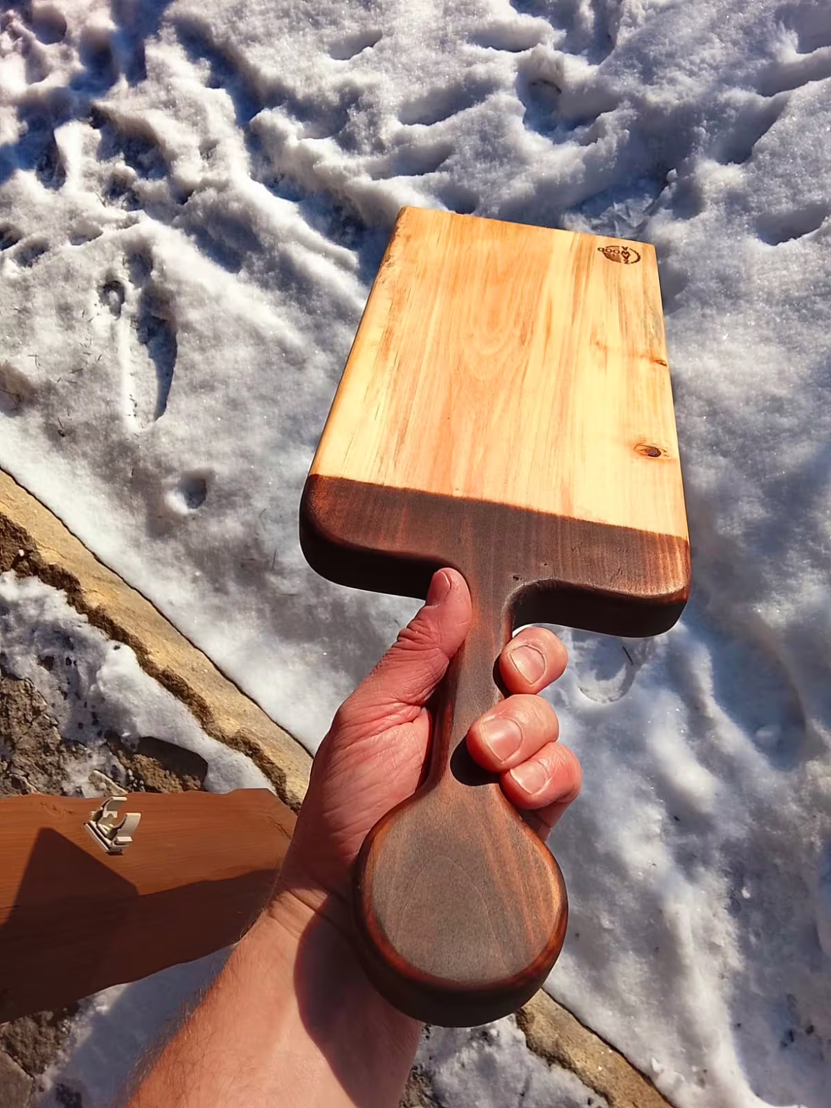Opalování není aplikováno plošně – oheň se dotýká jen vybraných částí prkénka. Díky tomu vzniká jedinečný vizuální rytmus, který nelze zopakovat. Každý kus reaguje na oheň jinak.