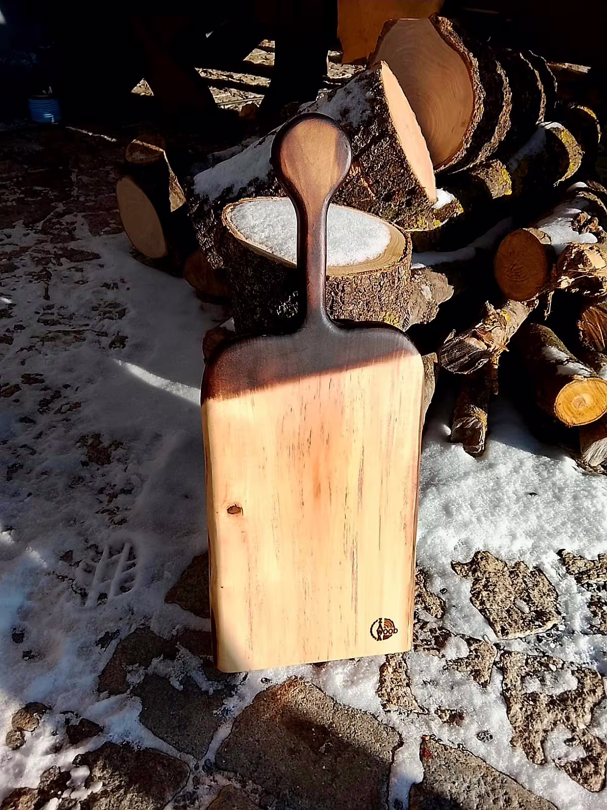 Prkénko je ručně tvarované, jemně broušené a ošetřené přírodním olejem vlastní výroby. Hodí se jak pro práci, tak pro servírování.