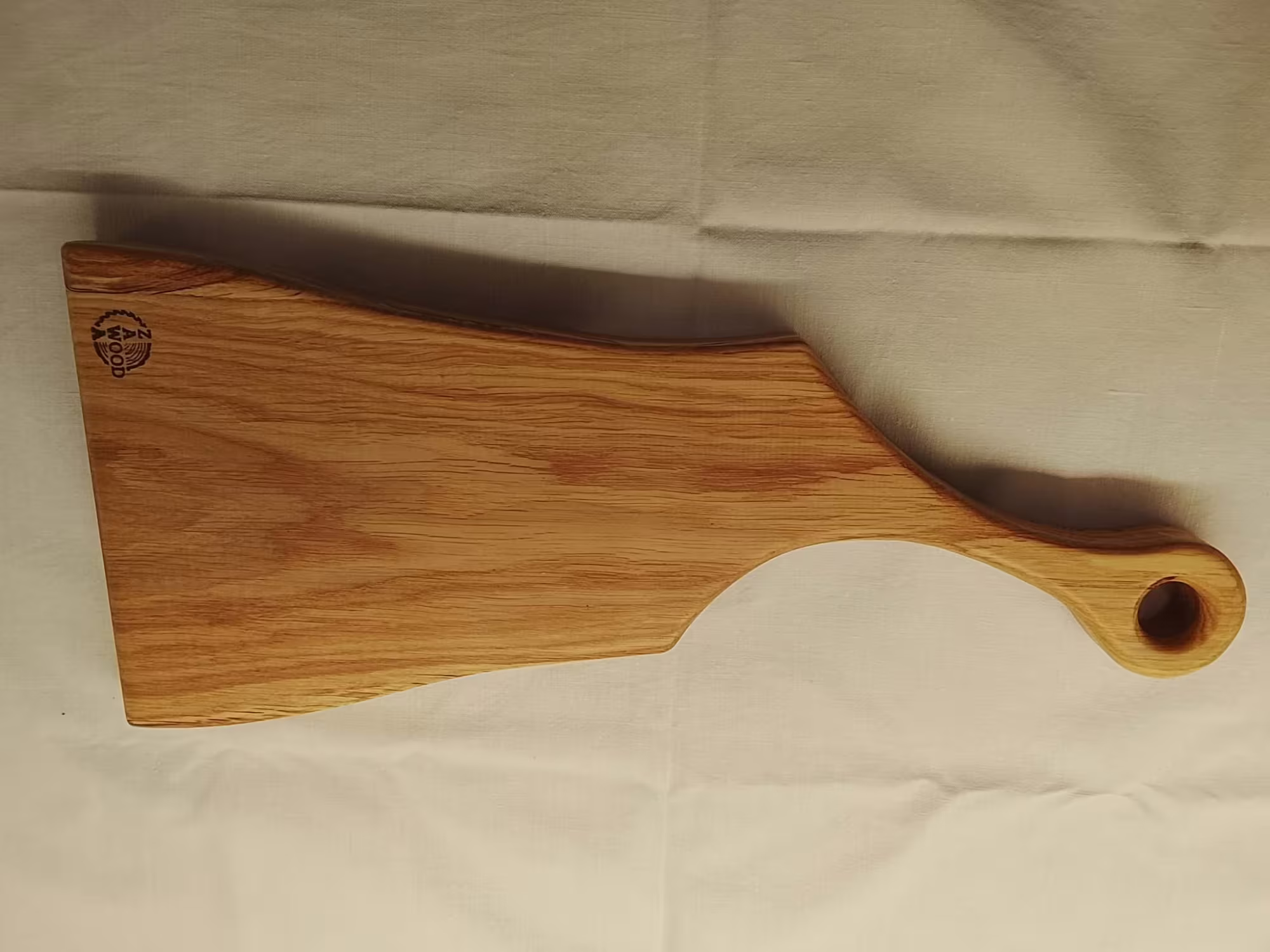 Dub pochází přímo ze stromů pana Čečky z Lhotic — dřevo, které bylo využito pro tento kus, neslo význam a hodnotu jeho pozemku. Po přesném pořezání na mobilním katru jsem dřevo opracoval ručně, aby prkénko ukázalo svou sílu, krásu a stabilitu. Každý řez letokruhů vypráví kus historie a dává prkénku jedinečný charakter.