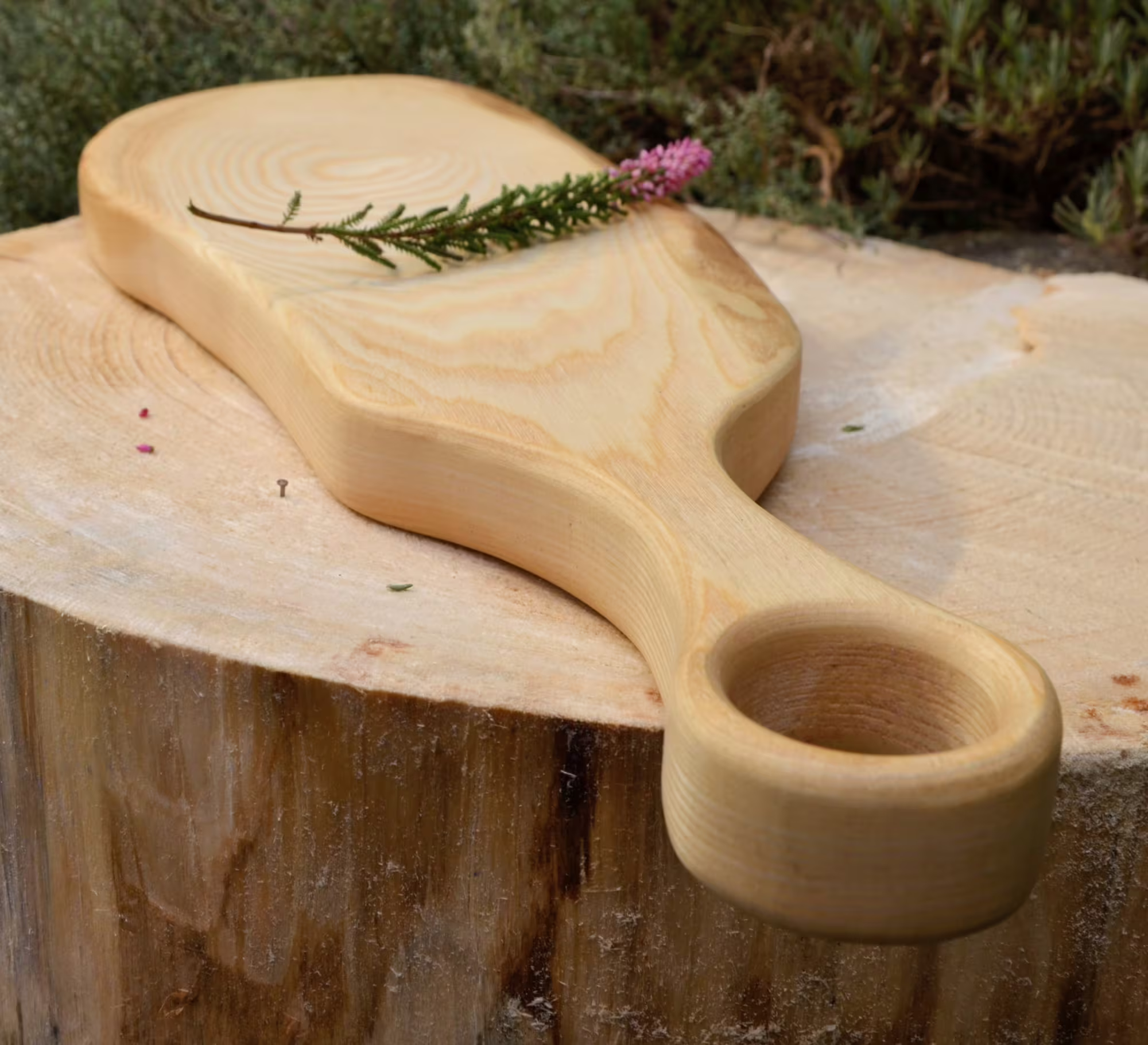 Jasan, ze kterého toto prkénko vzniklo, rostl v našem rodovém lese. Les založil můj praděda spolu s mým dědou — původně pro kolářské řemeslo, které provázelo generace. Tehdy ještě netušili, že se časy změní, auta nahradí koňské vozy a kolářské dovednosti pomalu vymizí. Přesto jsme dřevo i po letech opět využili: prkénko je malý kus historie, přírody a rodinné řemeslné tradice — dřevěné spojení minulosti a přítomnosti.